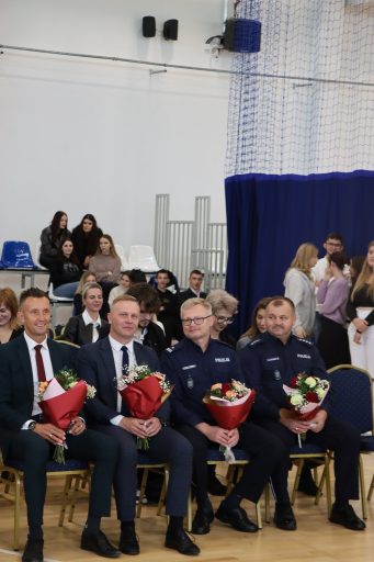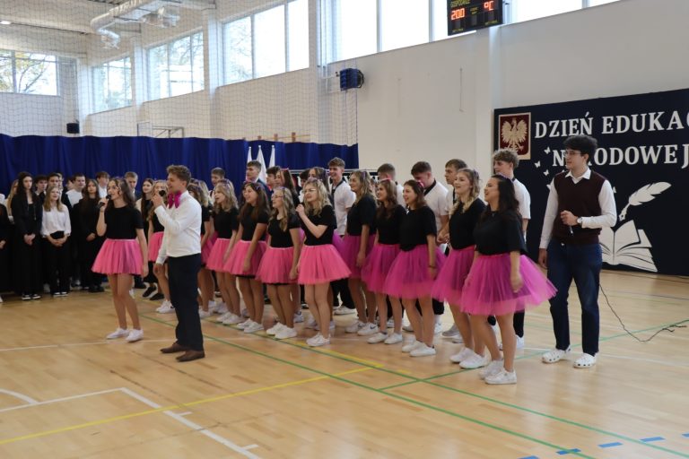 Po oficjalnym włączeniu 138 pierwszoklasistów w poczet uczniów, Pani Dyrektor życzyła im wytrwałości w zdobywaniu wiedzy oraz czerpania satysfakcji z własnego rozwoju. Również w życzeniach oraz przemówieniach Panów Radnych nie zabrakło podkreślenia wartości wiedzy i edukacji w dzisiejszym świecie oraz piękna, jakie niesie wykonywanie zawodu nauczyciela – jednego z tych, który związany jest z powołaniem. Zaapelowali przy tym do pierwszoklasistów, by poważnie traktowali słowa złożonej przysięgi i stawali się godnymi reprezentantami szkoły. Następnie głos ponownie zabrała Pani Dyrektor, przechodząc do drugiej okazji wspólnego świętowania – kolejnej rocznicy powstania Komisji Edukacji Narodowej i podziękowała gronu pedagogicznemu oraz pracownikom administracji oraz obsługi za rzetelną, profesjonalną pracę i poświęcenie. Wyróżnieni nauczyciele, jak również pracownicy administracyjni i obsługi, zgodnie z tradycją, zostali uhonorowani przyznawaną corocznie Nagrodą Dyrektora Szkoły. Miłym akcentem uroczystości była utrzymana w pogodnym tonie, a nawet nieco bajkowa część artystyczna, podczas której młodzież zaprezentowała swoje wyjątkowe talenty wokalne, taneczne, a nawet aktorskie. Wszyscy zgromadzeni mogli choć na chwilę odnaleźć w sobie magię dzieciństwa oraz ponownie, bezwarunkowo – jak dzieci – uwierzyć w dobro.