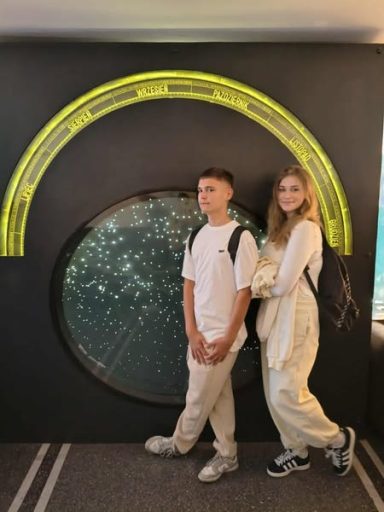W dniu 25.09.2025 roku uczniowie klasy 4E wybrali się z opiekunami na wycieczkę do Chorzowa. Odkryli, że Górny Śląsk oferuje wiele fascynujących miejsc do zwiedzenia. Najciekawszym punktem wycieczki była wizyta w Planetarium Śląskim. Uczniowie mieli okazję uczestniczyć w seansie pt. „Narodziny Ziemi”, a po krótkiej przerwie wzięli udział w dwulekcyjnych warsztatach „Fascynujący kosmos”. W przerwach między zajęciami skorzystali z okazji, by obejrzeć stałą wystawę mgławic. Podczas wizyty w planetarium dowiedzieli się, jak powstała nasza planeta i życie na niej. To były niezwykłe lekcje geografii i biologii, które zapadną im w pamięć na długo.
