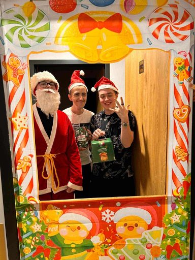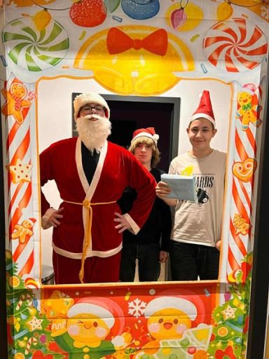 Wieczorem odbyło się wspólne spotkanie mikołajkowe, podczas którego nie zabrakło świątecznej muzyki, fotobudki oraz wspólnego ubierania choinki. Uczniowie chętnie brali udział we wszystkich świątecznych działaniach, a radości i śmiechu było co niemiara.