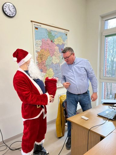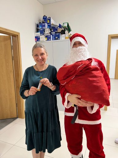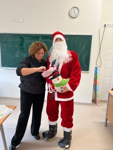 Mikołajkowe obchody w naszej szkole upłynęły w wyjątkowo radosnej, świątecznej atmosferze. Od rana po szkolnych korytarzach przechadzał się święty mikołaj wraz ze swoim pomocnikiem, niosąc uśmiech, dobre słowa i słodkie upominki. Każda osoba – Dyrekcja, nauczyciele, pracownicy obsługi oraz uczniowie – otrzymali słodki upominek opatrzony świątecznym przesłaniem pełnym życzliwości i serdeczności.