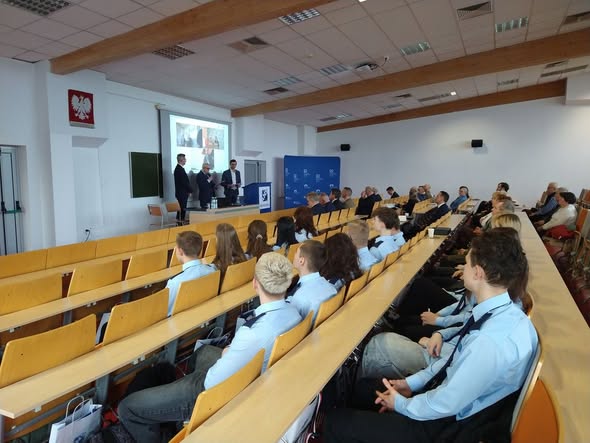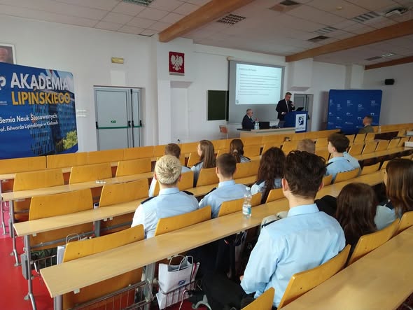 10 grudnia 2025 r. licealiści z klasy II A w ramach realizowanej innowacji pedagogicznej prawno-policyjnej uczestniczyli na Wydziale Prawa i Bezpieczeństwa Akademii Nauk Stosowanych im. prof. E. Lipińskiego w Kielcach w drugiej edycji konferencji naukowej pt. „Bezpieczeństwo wewnętrzne i zewnętrzne Polski w perspektywie konfliktów w państwach sąsiednich”. Współorganizatorem tej konferencji był Ośrodek Debaty Międzynarodowej w Kielcach oraz Winnicki Instytut Kooperatywny w Winnicy w Ukrainie.