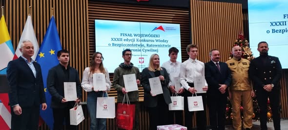 16 XII 2025 r. w Kielcach w Świętokrzyskim Urzędzie Wojewódzkim odbył się finał XXXII edycji Wojewódzkiego Konkursu Wiedzy o Bezpieczeństwie, Ratownictwie i Obronie Cywilnej. Szkołę reprezentowała uczennica klasy I A, Wiktoria Skiba, która zajęła I miejsce. Gratulujemy sukcesu i życzymy powodzenia w kolejnych zawodach.