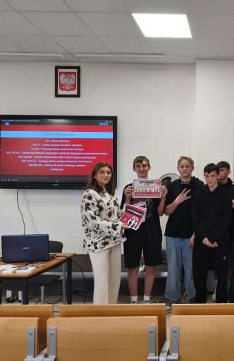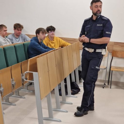 z Wydziału Ruchu Drogowego Komendy Miejskiej Policji w Kielcach. Temat przewodni szkolenia to ,,Bezpieczny Kierowca Zawodowy”. Uczestnikami byli uczniowie z technikum transportu drogowego, logistycznego i kształcący się w Branżowej Szkole I Stopnia na kierunku kierowca mechanik. Podczas szkolenia poruszane były m. in. zagadnienia dotyczące przepisów ruchu drogowego, kompetencji i obowiązków kierowcy podczas jazdy, kontroli drogowej, zagrożeń i niebezpiecznych sytuacji na drodze. Szkolenie było wartościową i merytorycznie ciekawą lekcją dla uczniów, a wiedza przysłuży się do zapewnienia sobie i innym bezpieczeństwa na drodze.