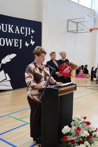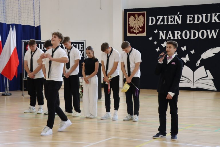 Po oficjalnym włączeniu 138 pierwszoklasistów w poczet uczniów, Pani Dyrektor życzyła im wytrwałości w zdobywaniu wiedzy oraz czerpania satysfakcji z własnego rozwoju. Również w życzeniach oraz przemówieniach Panów Radnych nie zabrakło podkreślenia wartości wiedzy i edukacji w dzisiejszym świecie oraz piękna, jakie niesie wykonywanie zawodu nauczyciela – jednego z tych, który związany jest z powołaniem. Zaapelowali przy tym do pierwszoklasistów, by poważnie traktowali słowa złożonej przysięgi i stawali się godnymi reprezentantami szkoły. Następnie głos ponownie zabrała Pani Dyrektor, przechodząc do drugiej okazji wspólnego świętowania – kolejnej rocznicy powstania Komisji Edukacji Narodowej i podziękowała gronu pedagogicznemu oraz pracownikom administracji oraz obsługi za rzetelną, profesjonalną pracę i poświęcenie. Wyróżnieni nauczyciele, jak również pracownicy administracyjni i obsługi, zgodnie z tradycją, zostali uhonorowani przyznawaną corocznie Nagrodą Dyrektora Szkoły. Miłym akcentem uroczystości była utrzymana w pogodnym tonie, a nawet nieco bajkowa część artystyczna, podczas której młodzież zaprezentowała swoje wyjątkowe talenty wokalne, taneczne, a nawet aktorskie. Wszyscy zgromadzeni mogli choć na chwilę odnaleźć w sobie magię dzieciństwa oraz ponownie, bezwarunkowo – jak dzieci – uwierzyć w dobro.