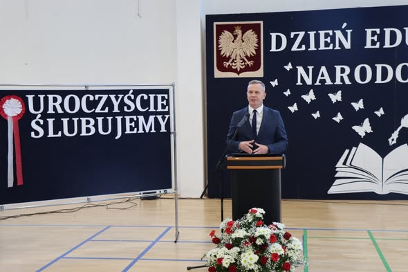 21 października odbyły się uroczyste obchody Dnia Edukacji Narodowej połączone z równie podniosłym ślubowaniem uczniów klas pierwszych. Wydarzenia te swoją obecnością uświetnili goście: Radni Powiatu Kieleckiego Panowie Sławomir Stelmaszczyk i Łukasz Woźniak, Komendant Komisariatu Policji w Strawczynie podinsp. Zbigniew Skrzypczyk, Kierownik Referatu Prewencji asp. szt. Jacek Zajęcki, przedstawicielki Rady Rodziców Panie Katarzyna Dzwonek, Karolina Suliga oraz Beata Joszko-Podstawka. Miłe życzenia na Dzień KEN przesłali także Komendant Wojewódzkiej Policji w Kielcach insp. Zbigniew Nowak oraz Komendant Karpackiego Oddziału Straży Granicznej im. 1 Pułku Strzelców Podhalańskich gen. bryg. SG Adam Jopek. Po wprowadzeniu pocztu sztandarowego i odśpiewaniu hymnu narodowego Dyrektor Szkoły Pani Agnieszka Prędota-Gad powitała zebranych, wprowadziła w atmosferę wydarzenia, po czym odczytała podniosły akt ślubowania, a reprezentanci klas pierwszych złożyli przysięgę na sztandar szkoły, w myśl roty zapewniając o szacunku i godnym reprezentowaniu Szkoły.